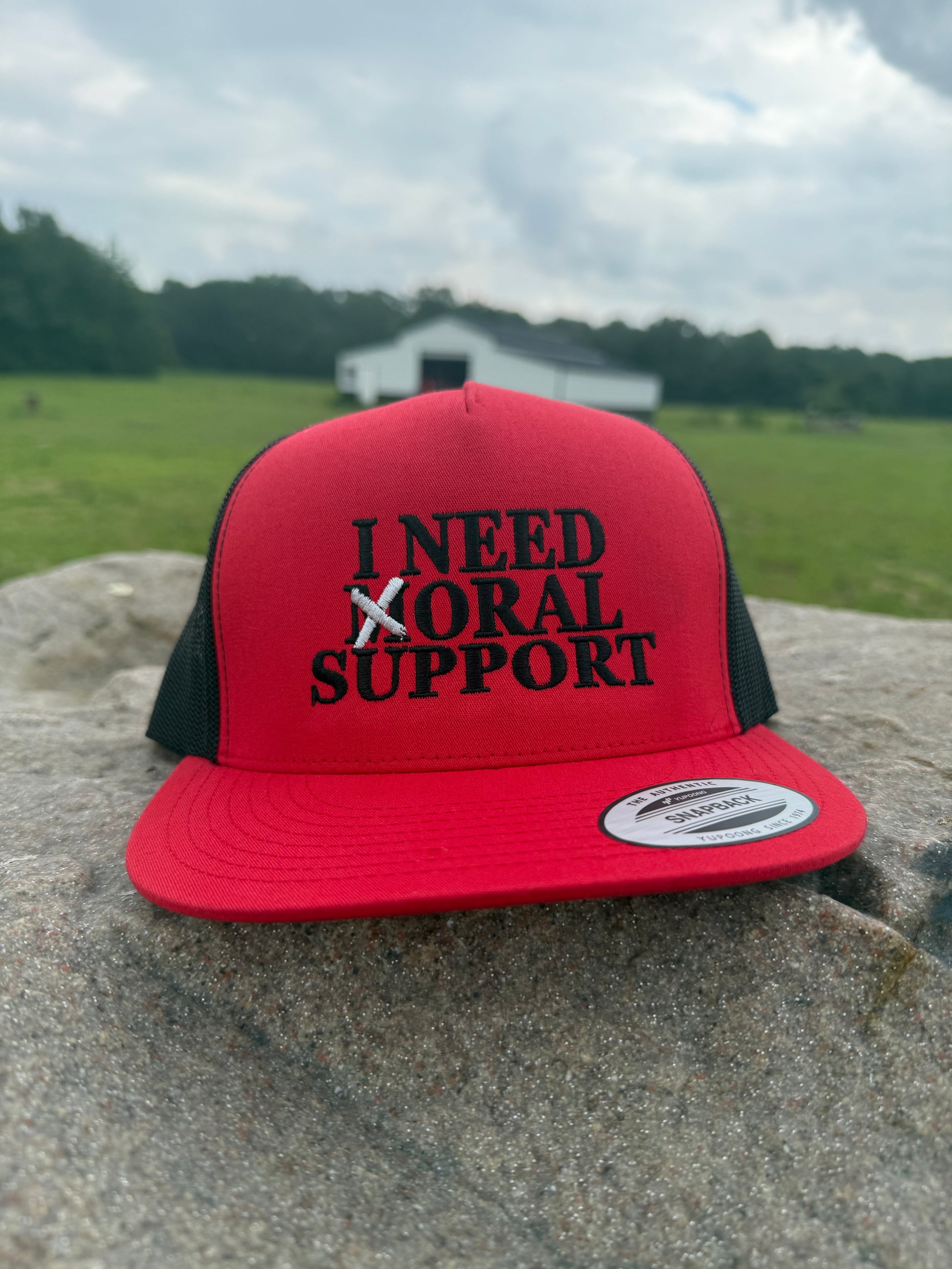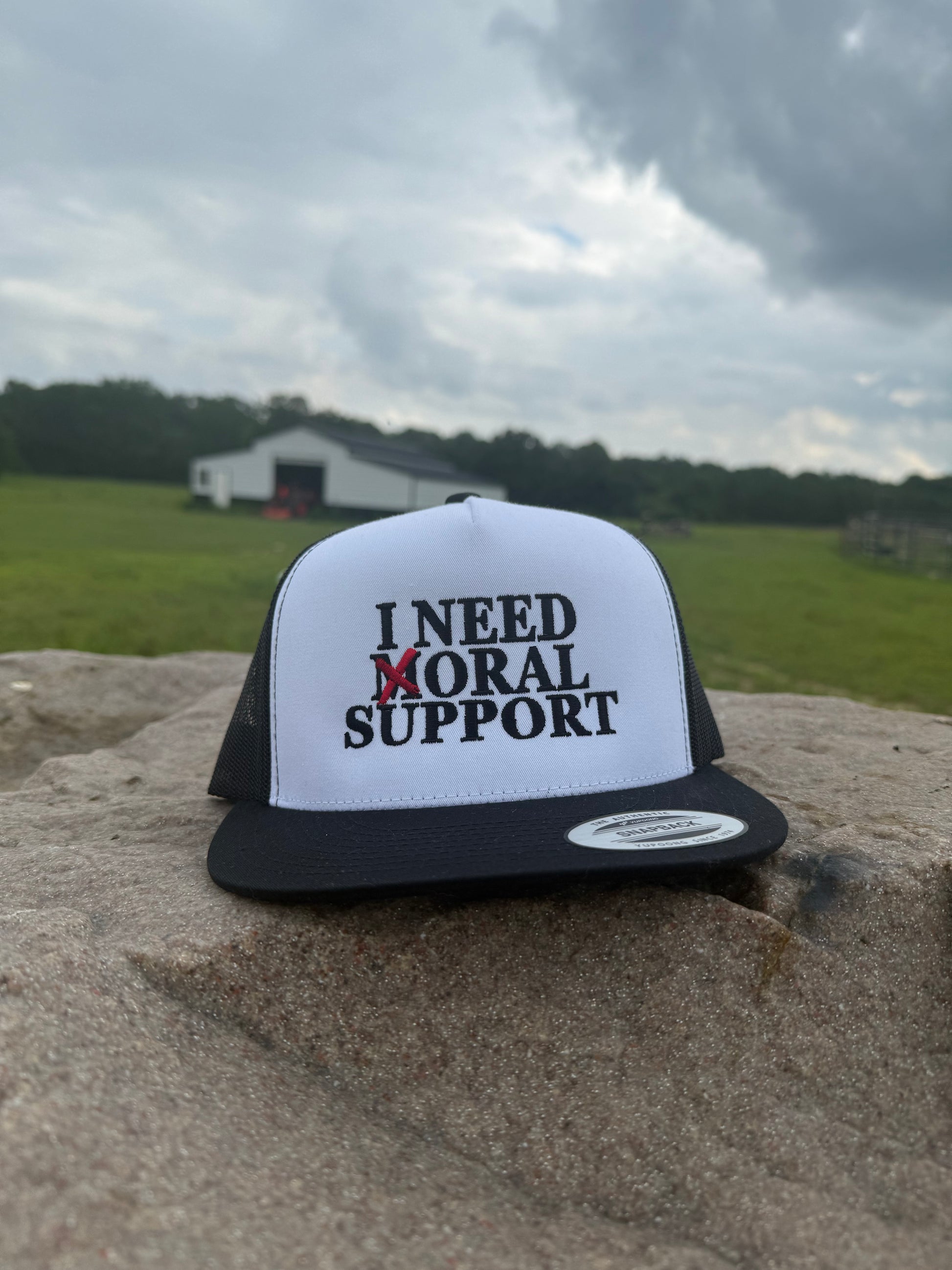 Moral support? Cross it out. This hat is for the bold, the cheeky, and anyone who loves a good double-take. Made for comfort with an adjustable snapback and breathable mesh, it’s your go-to for making a statement without saying a word.